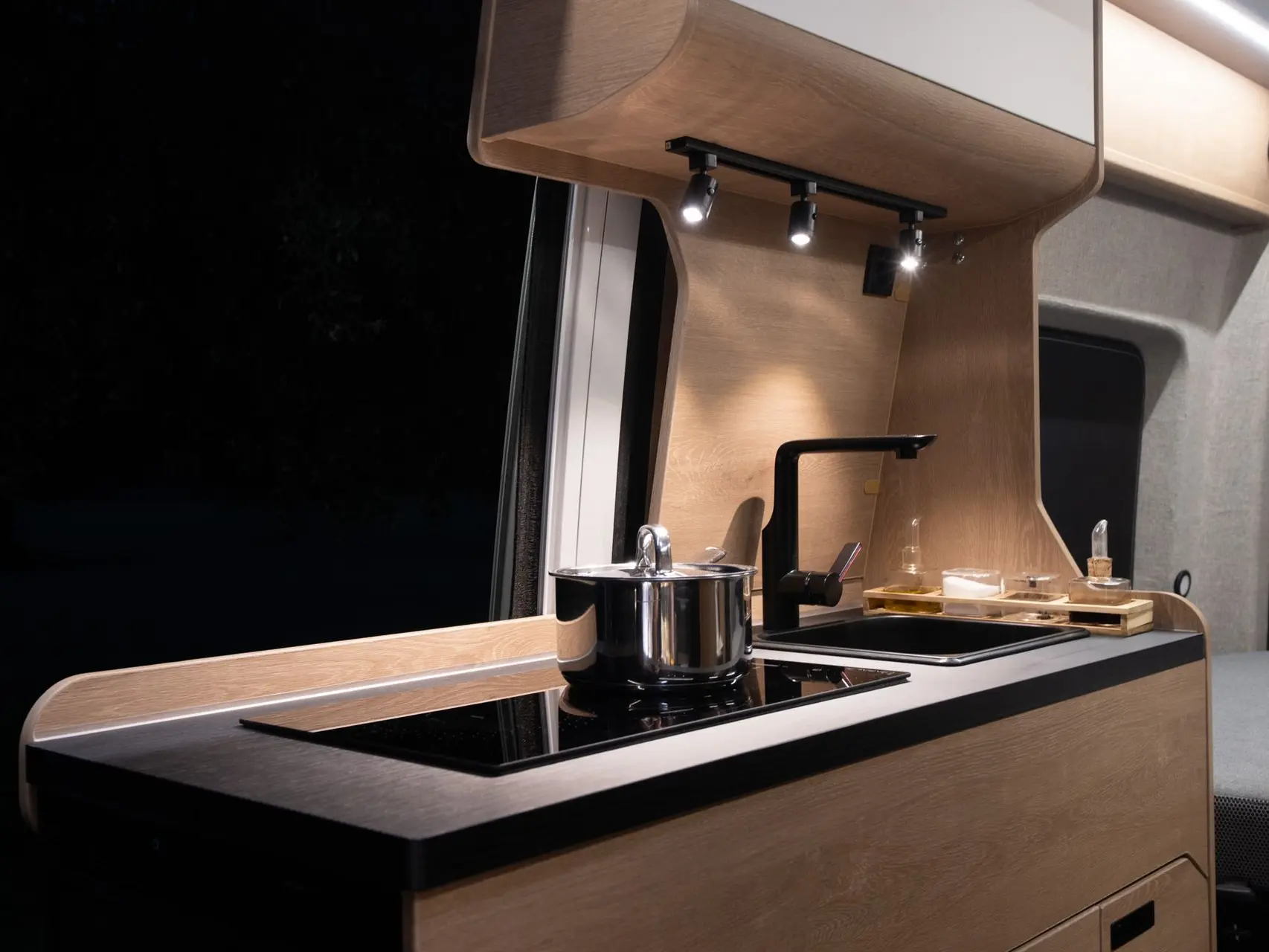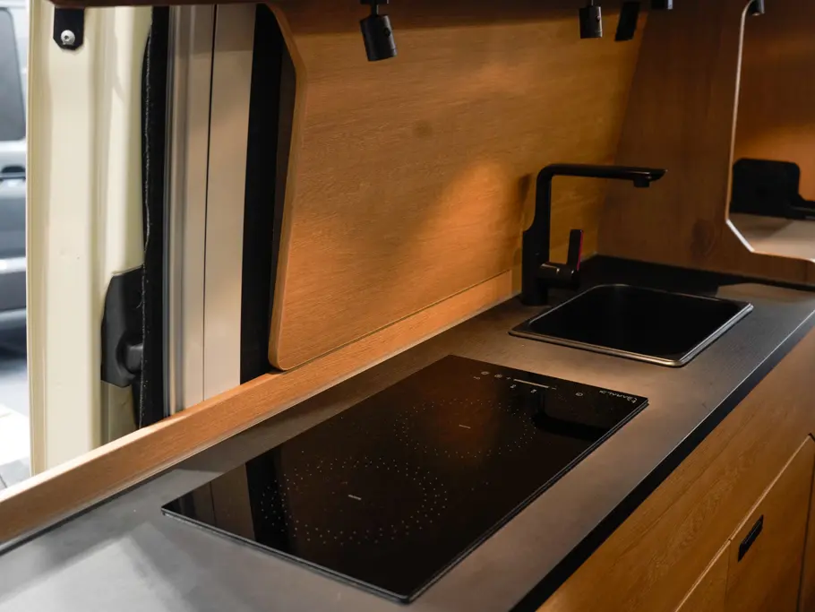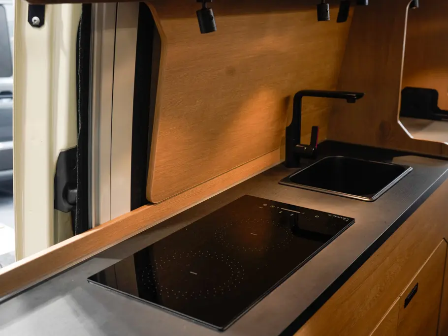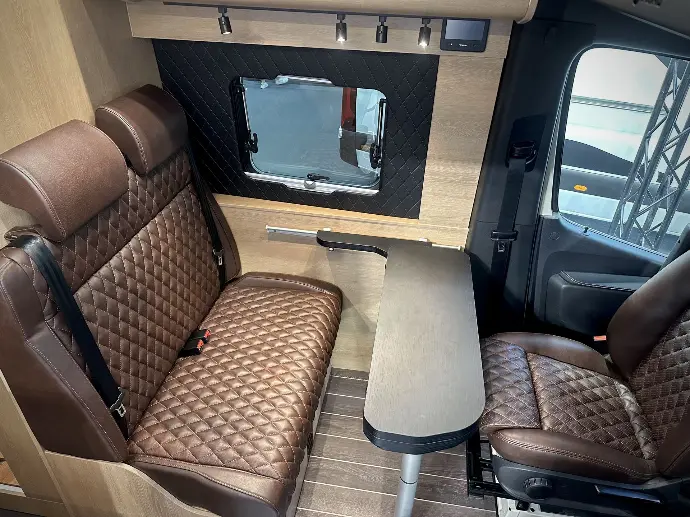 Elige tapizados de piel, ecopiel o tejidos a medida, colores de madera y acabados minimalistas para crear un interior que refleje tu estilo. Combina accesorios exteriores, molduras y protecciones con configuraciones interiores a medida para lograr un vehículo único, elegante y totalmente adaptado a tu forma de viajar y vivir la aventura.