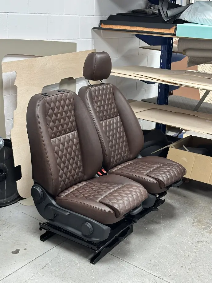 Creamos nuestro propio departamento de tapicería. Este paso nos permite un control absoluto sobre la calidad de los acabados y la personalización de los interiores, cuidando cada detalle.