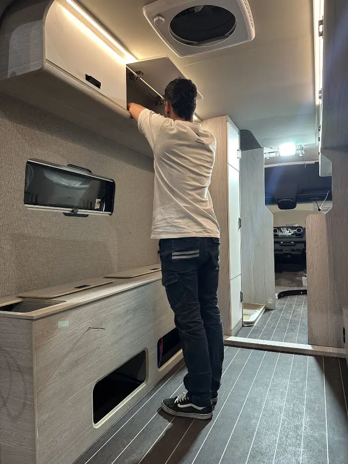 Cada vehículo refleja nuestro compromiso con la excelencia. Desde el montaje de muebles y canteado hasta la instalación final, cuidamos cada detalle para garantizar productos de máxima calidad. Un proceso industrial, profesional y pensado para durar.