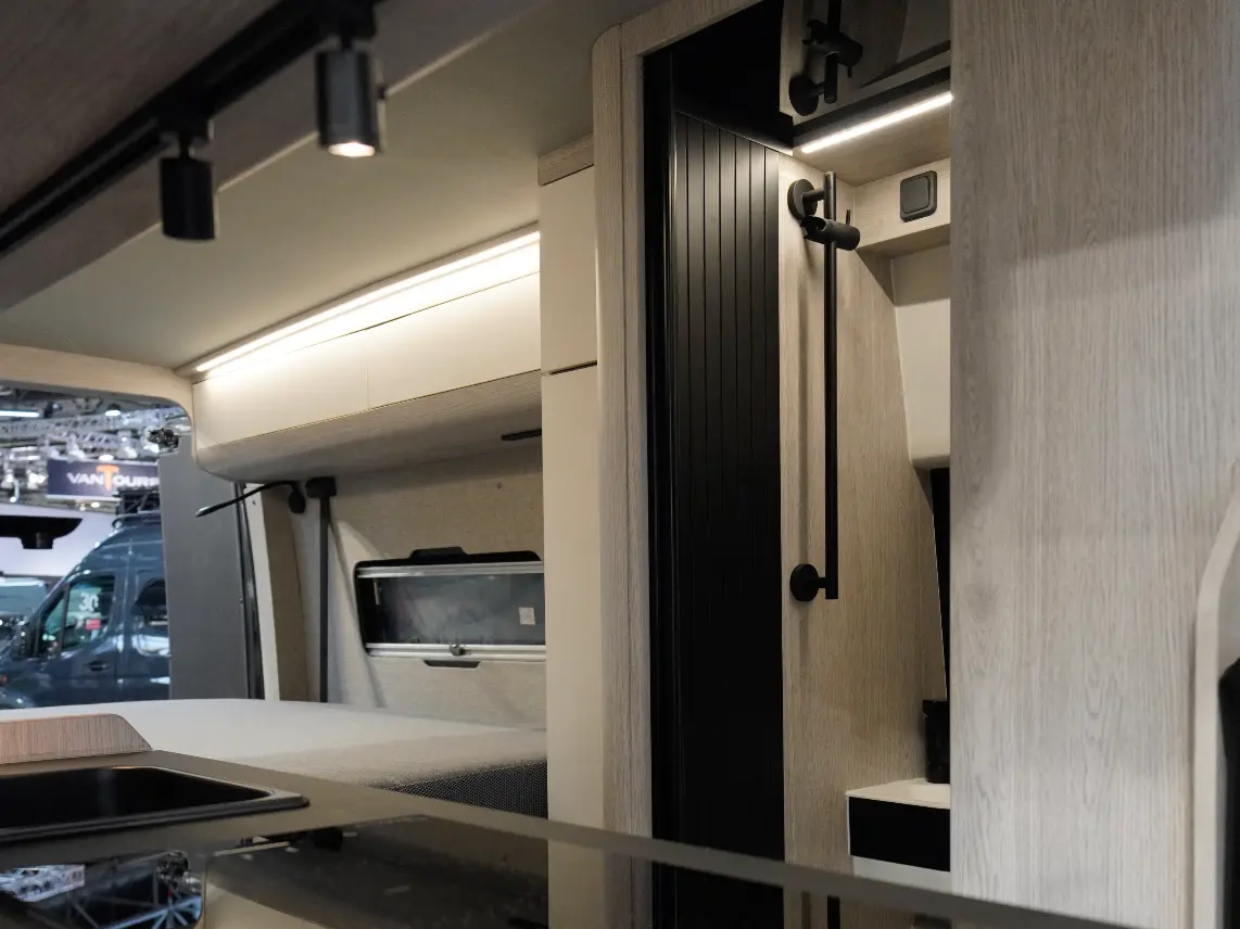 Elige tapizados de piel, ecopiel o tejidos a medida, colores de madera y acabados minimalistas para crear un interior que refleje tu estilo. Combina accesorios exteriores, molduras y protecciones con configuraciones interiores a medida para lograr un vehículo único, elegante y totalmente adaptado a tu forma de viajar y vivir la aventura.
