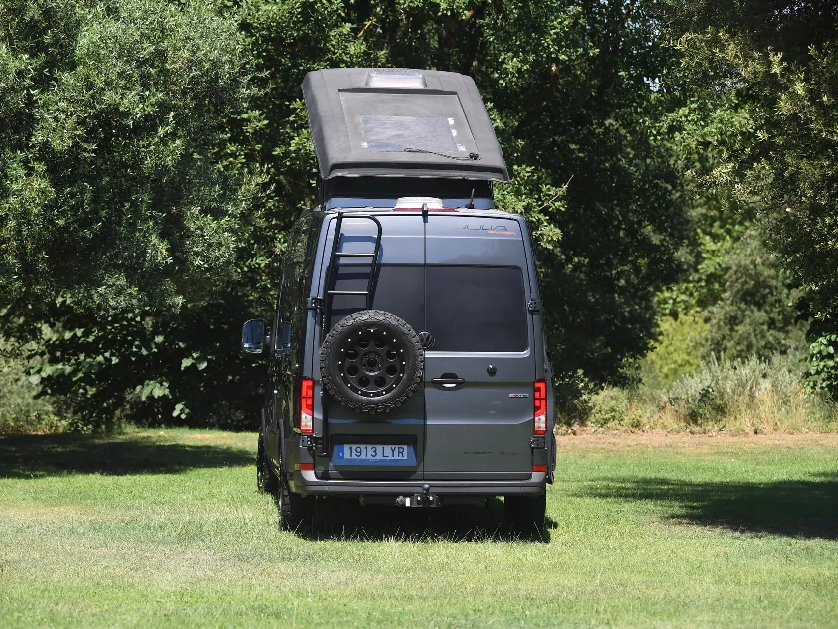 Amplía tu experiencia con opciones diseñadas para superar cualquier terreno: techo elevable, suspensiones reforzadas, pintura resistente y accesorios exteriores funcionales. Mejora la autonomía con baterías y placas solares adicionales, optimiza tu confort con calefacción diesel o gas, y personaliza cada detalle para que tu furgoneta se adapte a tus necesidades.”